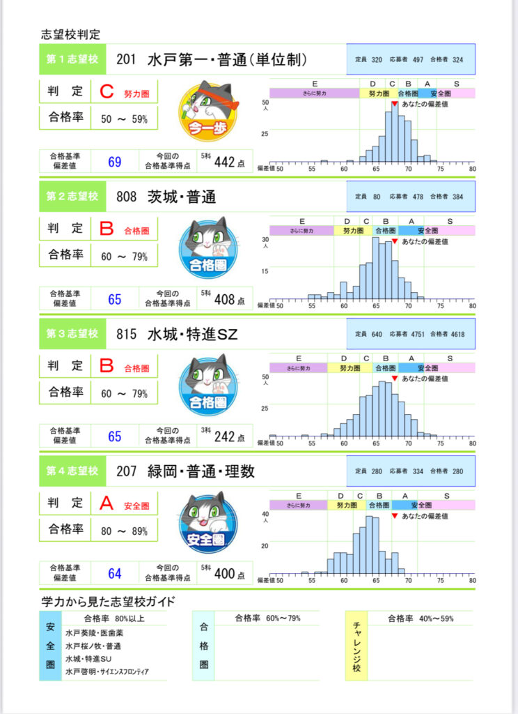②志望校の偏差値と自分の位置を5段階評価