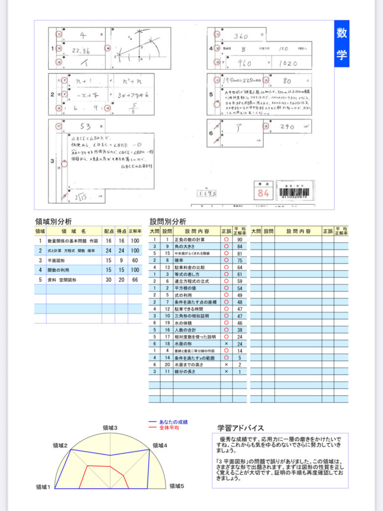 ①その教科のその子の細かい分析 と回答がセットになった分析表